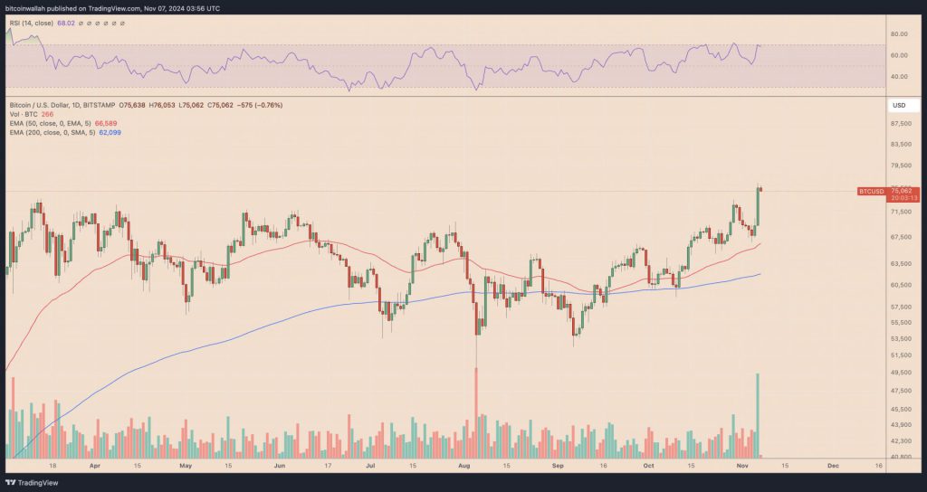 Der Kryptowährungsmarkt hat sich dramatisch verändert, seit Bitcoin nach Donald Trumps Sieg über Kamalah Harris einen neuen Rekord von 76.480 US-Dollar erreichte. Wenn man sich diese Zahlen heute anschaut, ist es eine Art Preisvorhersage, die fast unrealistisch erscheint – wir sprechen über Trumps Politik, die das Bitcoin-Wachstum bis 2025 möglicherweise auf über 100.000 US-Dollar steigern könnte. Das ist für einen virtuellen Vermögenswert ziemlich erstaunlich.