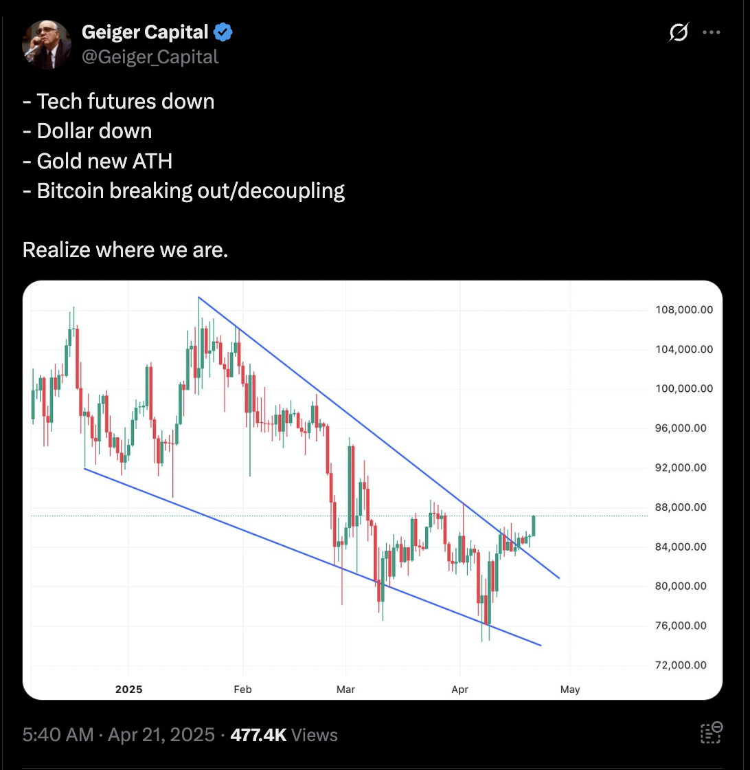 “Chatter Befragung der Unabhängigkeit der Fed hat positive Spillover -Effekte auf BTC”, ” sagte Vetle Lunde, Forschungsleiter bei K33.