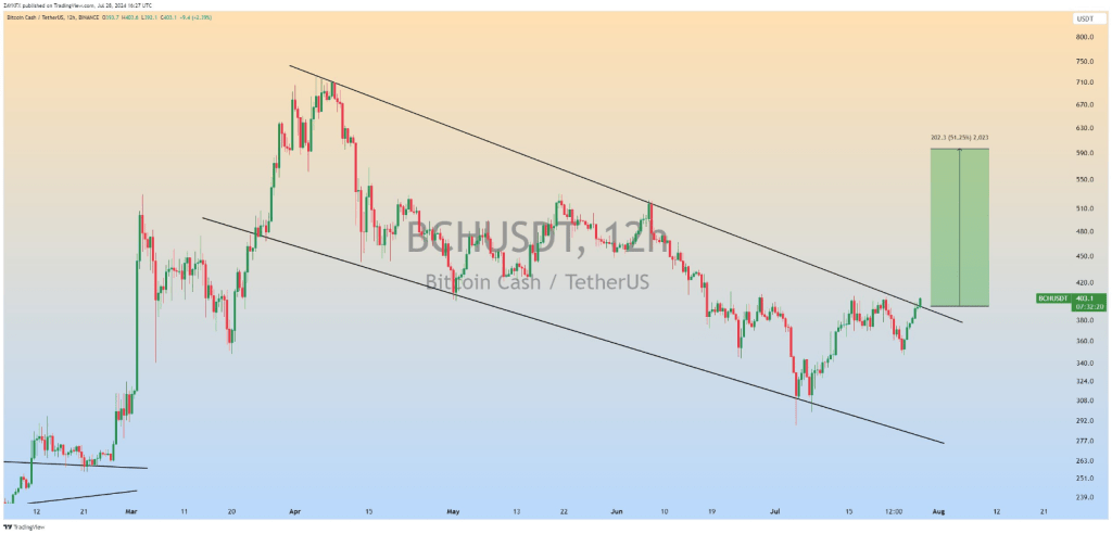 $BCH Ausbruch aus dem absteigenden Kanal in 12 Stunden✅