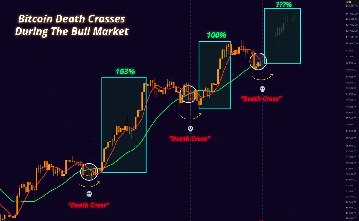 “Für diejenigen unter Ihnen, die denken, dass der Bitcoin -Todeskreuz etwas bedeutet – empirisch ist es totaler Unsinn und in der Tat oft eine gute Kaufmöglichkeit.”