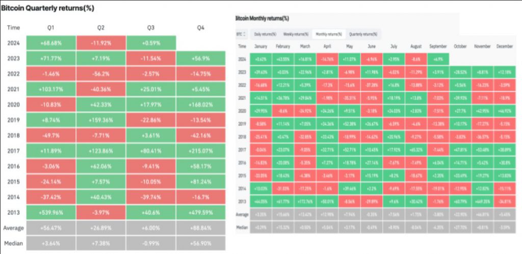 Trotz des aktuellen Einbruchs wird Bitcoin das dritte Quartal dennoch mit positiven Renditen abschließen. Die Performance von Bitcoin war in den vergangenen Quartalen gut, insbesondere in Wahljahren.