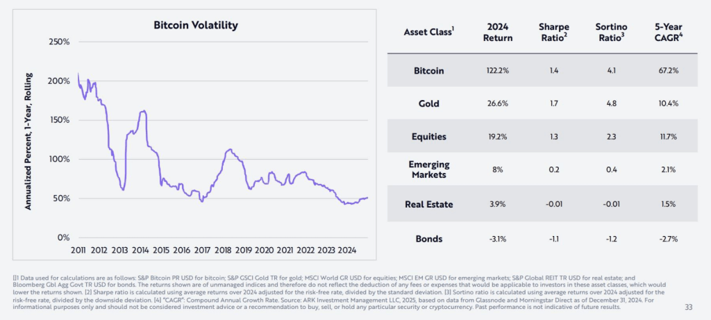 Die Volatilität von Bitcoin ist auf ein neues Tiefpunkt gesunken. Die risikobereinigte Rendite ist anderen wichtigen Anlageklassen nach wie vor überlegen. pic.twitter.com/pbpascbczv
