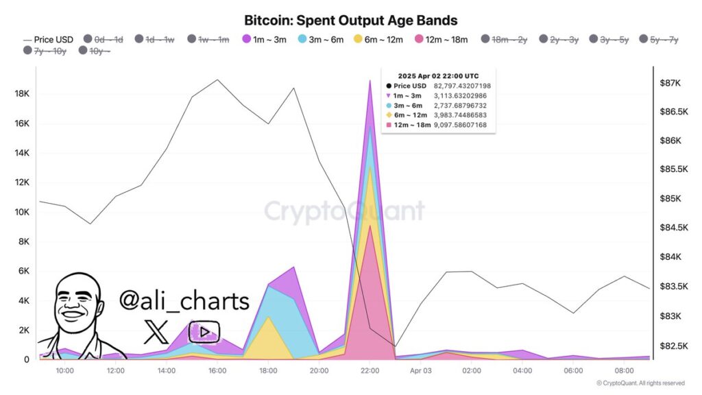 Die jüngste Aussage von Saylor zeigt, wie erfahrener Investoren immer noch in der Königsmünze eingesperrt sind. Neulinge, die kürzlich in den Markt eingetreten sind, sind jedoch möglicherweise in Panik. Laut einem kürzlichen Tweet von Analyst Ali Martinez wurden Berichten zufolge 18.930 BTC kurz nach Trumps Tarifkündigung von kurzfristigen Inhabern verkauft.