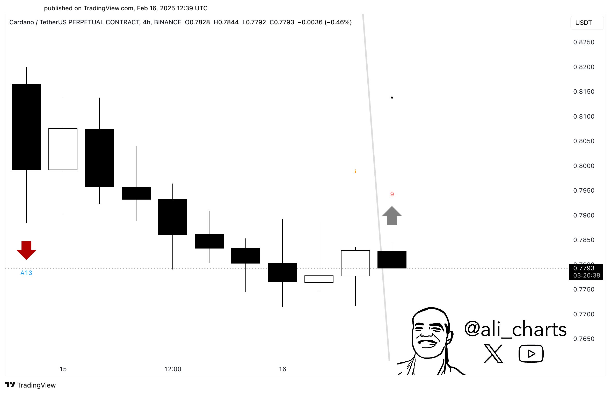 Laut Analyst Ali Martinez hat das TD-sequentielle Signal ein “Buy” (A13) -Schild auf dem vierstündigen Diagramm von ADA geblitzt. Das TD -Sequentius hilft dabei, Trend -Erschöpfungspunkte sowie mögliche Umkehrungen zu identifizieren.