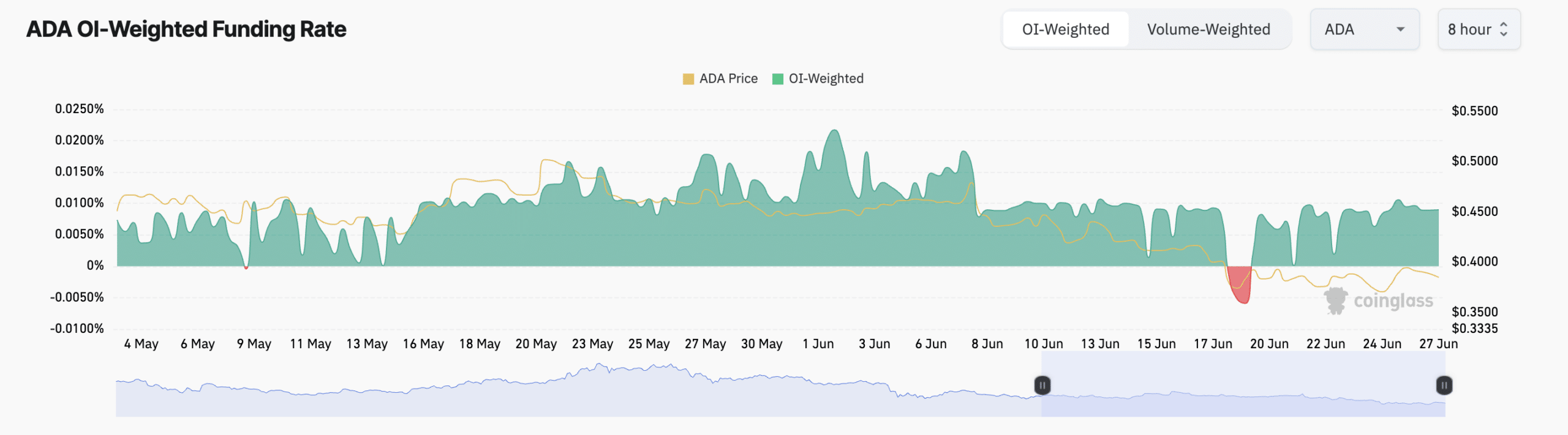 Angesichts der Marktvolatilität zeigten die ADA-Finanzierungsraten an vielen Börsen in den letzten Tagen einen Abwärtstrend. Das Short/Long-Verhältnis von ADA auf Binance für ADA/USDT betrug in den letzten 24 Stunden 3,7.