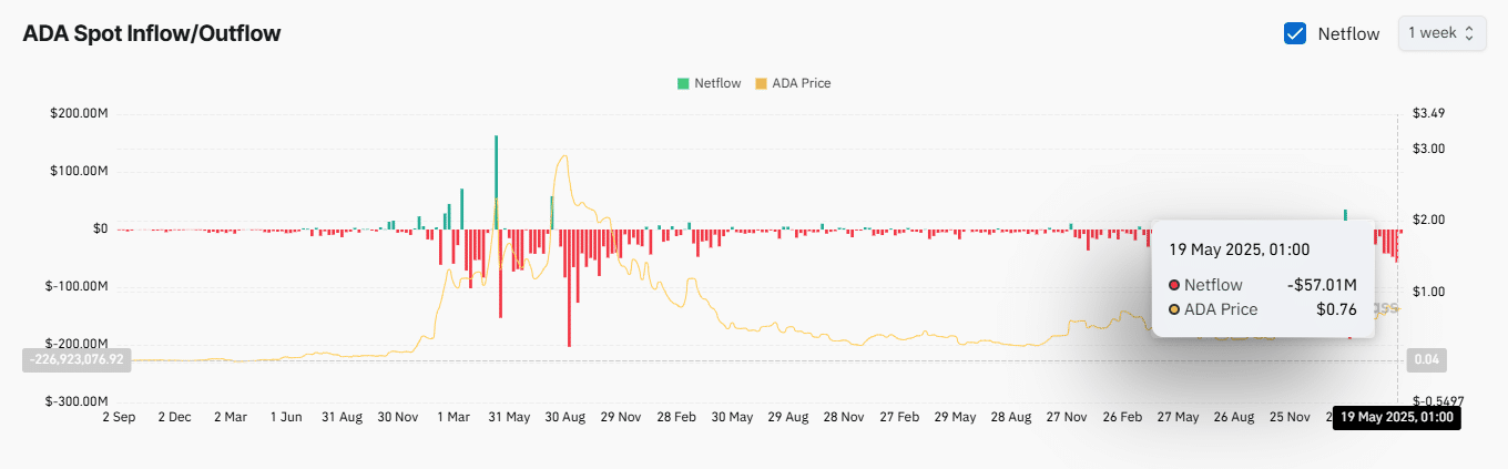 In den letzten Monaten haben Händler bei Spot den Vermögenswert konsequent gekauft. Tatsache ist, dass aNach den Daten von Coingglass über die Liquiditätsflüsse ein- und ausgeblendet hat mehr ADA als je zuvor den Austausch.