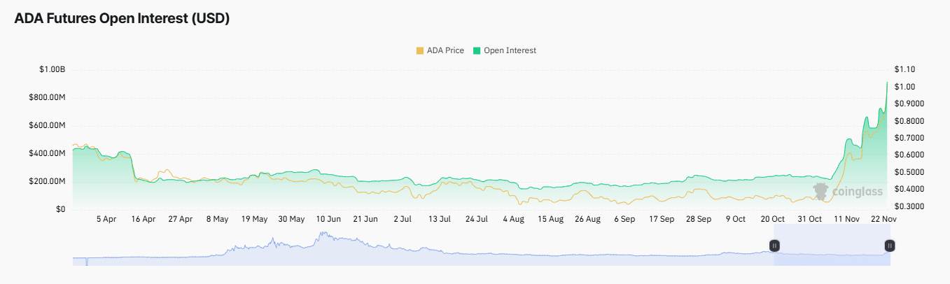 Gleichzeitig kam es zu einer Reihe von Short-Liquidationen in Höhe von 11,12 Millionen US-Dollar, da Händler, die auf einen Preisrückgang gewettet hatten, durch den steigenden Trend von ADA gezwungen waren, ihre Positionen zu schließen.