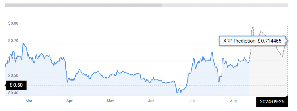 Nachfolgend finden Sie eine Liste von CoinCodexDer Preis von XRP liegt derzeit bei 0,59 $. Dies entspricht einem Rückgang von 0,55 % in den letzten 24 Stunden. Im September könnte der Preis des Tokens um 20 % gestiegen sein und 0,71 $ erreicht haben.