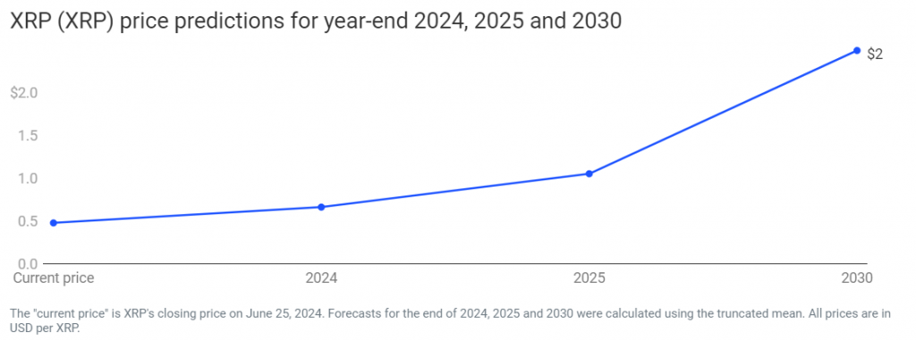 An der Veranstaltung nehmen 15 Diskussionsteilnehmer teil. Finder Der Preis von XRP wird als extrem bullisch prognostiziert. Die Diskussionsteilnehmer und namhaften Experten sagten voraus, dass XRP im Jahr 2025 1,05 USD erreichen würde, wobei der Token bis 2030 möglicherweise 2,49 USD erreichen könnte.
