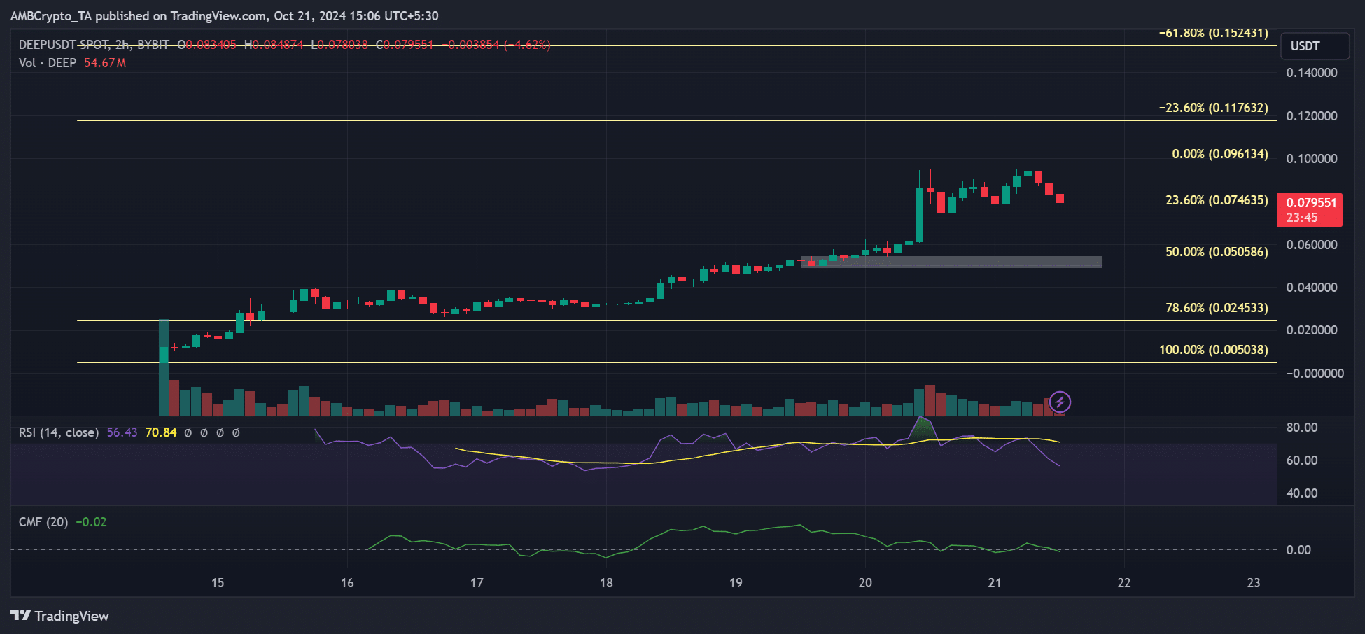 Der Preis von DEEP könnte auf 0,05 $ (50 % Fib) fallen, insbesondere wenn sein Wert unter 0,08 $ fällt.