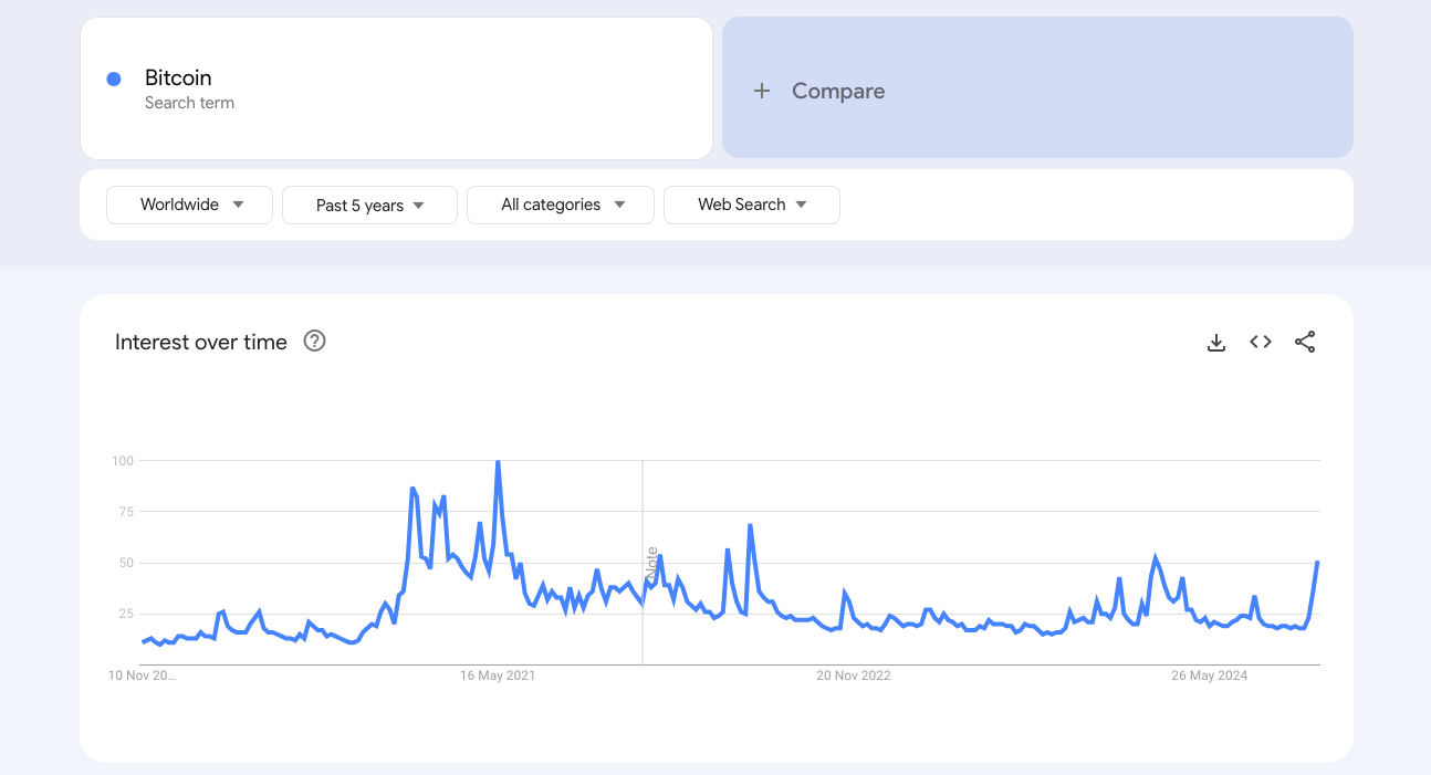 Aktuelle Daten zu Google Trends Wie im Jahr 2020 werden die Verbraucher erst dann aufmerksam werden, wenn die BTC-Preise zu steigen beginnen.