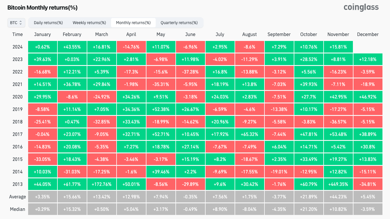 Monatliche BTC/USD-Erträge (Screenshot) CoinGlass