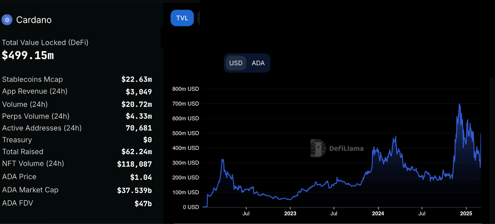 Es ist aus der Erhöhung ersichtlich Gesamtwert gesperrt TVL auf der Cardano -Netzwerk.