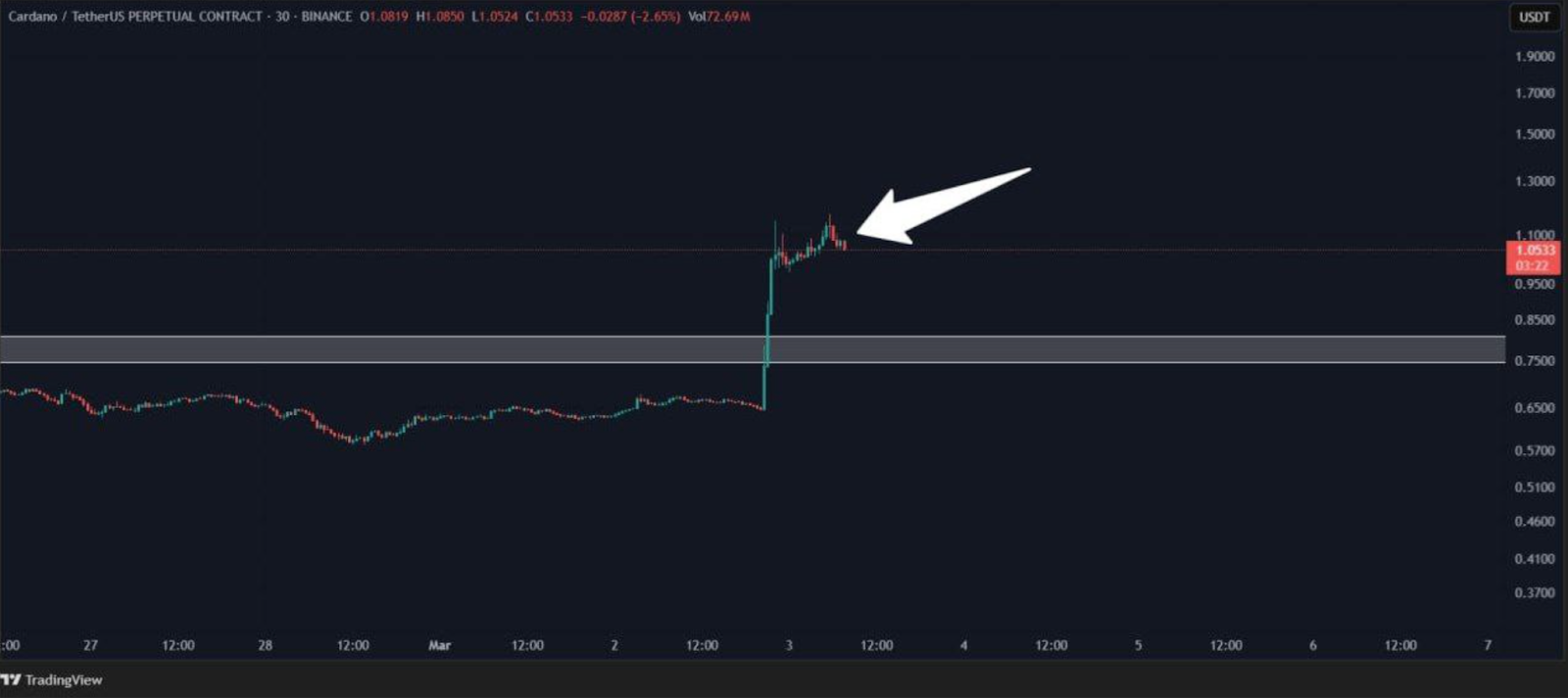 “Cardano hat gerade einen Breakout mit hoher Volatilität durchgeführt, in dem die wichtigsten Liquiditätszonen vorbeigedrängt wurden!” sagte Arvid Crypto, ein pseudonymer Blogger auf X.com.