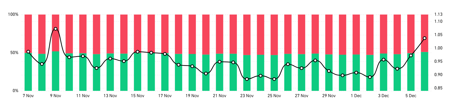 Dieser Aufwärtstrend ist bei Inhabern von Long-Positionen offensichtlich. Suis Verhältnis von Long- zu Short-Positionen zeigt laut Coinglass, dass die Long-Positionen den Markt dominieren. Die meisten Anleger werden darauf wetten, dass die Preise steigen werden.