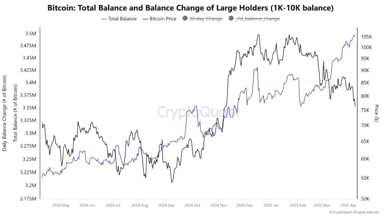 “Wale (1K-10K-Gleichgewicht) haben sich seit März hart angesammelt, auch als der Preis rutschte” notiert Diese Woche werden Cryptoquant und X Daten präsentieren.