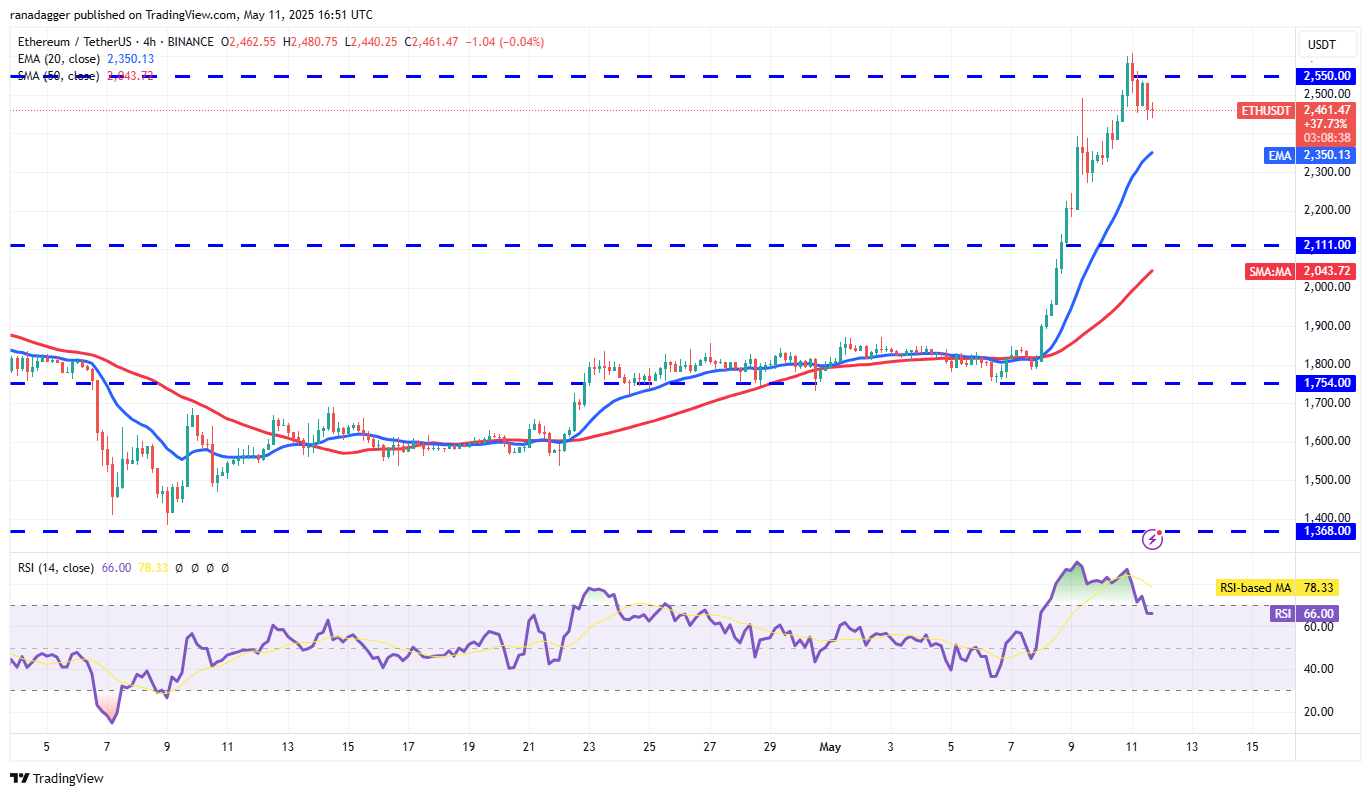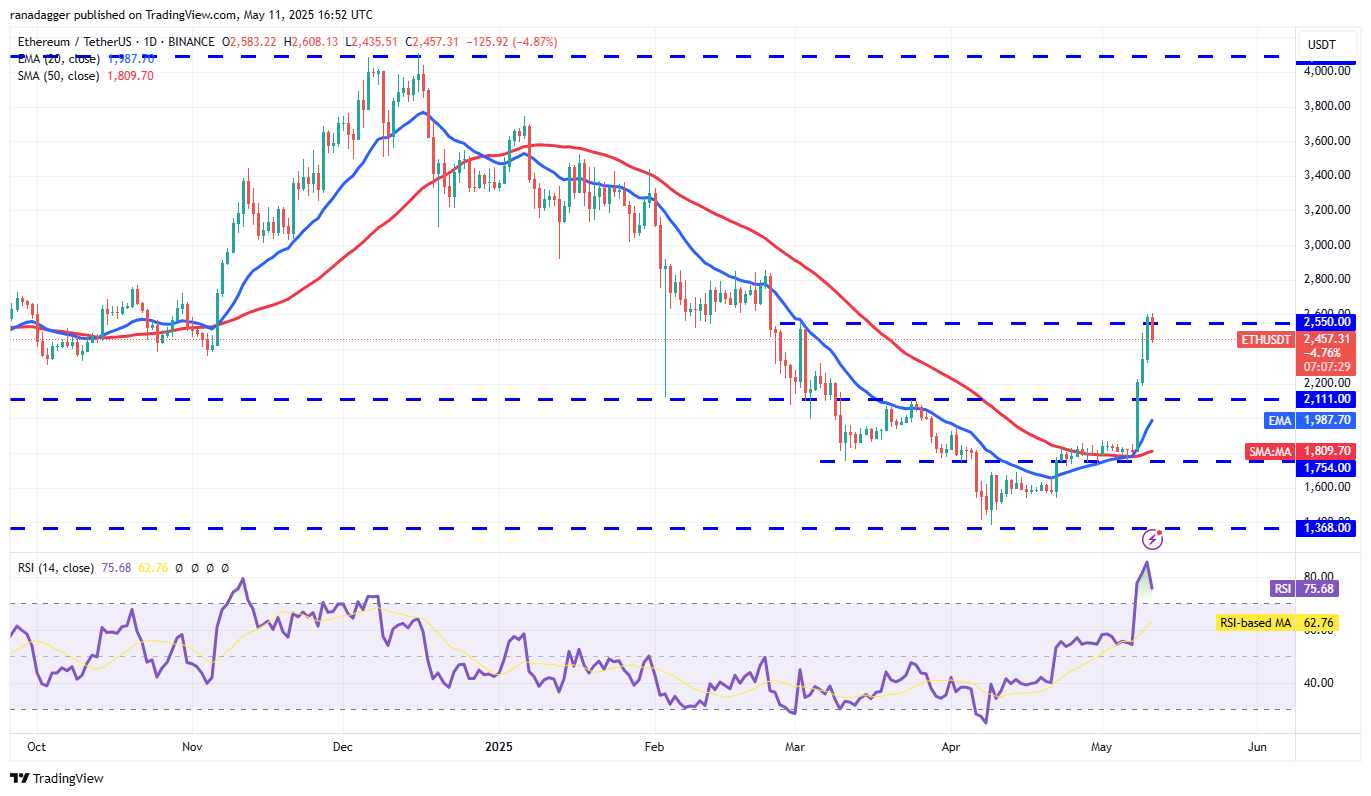 ÄtherEth() stieg von 1808 US -Dollar am 8. Mai auf 2.600 US -Dollar, 10. Mai, was darauf hinweist, dass Bullen aggressiv gekauft wurden.