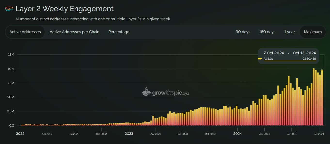 Der Anstieg der Aktivität in Layer-2-Netzwerken spiegelt die Nachfrage nach günstigeren und schnelleren Transaktionen wider, was Ethereum dabei hilft, zu wachsen, ohne seine Dezentralisierung zu verlieren.