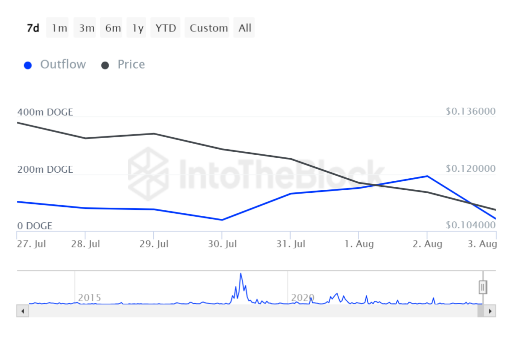 Auch der Abfluss von Großinvestoren ist von einem Allzeithoch von 192.000.000 auf nur noch 42.000.000 zurückgegangen. Die Tatsache, dass die größten Dogecoin-Investoren ihre Coins nicht verkaufen, zeigt, dass sie Vertrauen in eine eventuelle Trendwende haben.