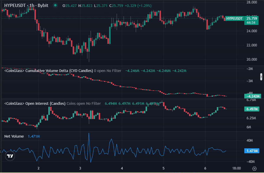 Das Diagramm der Hype -Liquidationen zeigt einen signifikanten Anstieg der Anzahl der Liquidationen in den letzten Wochen. Lange Liquidationen dominieren eindeutig kurze Liquidationen. Es ist möglich, dass gehebelte Händler mit zunehmendem Preisvolatilität gezwungen waren, ihre Positionen zu verkaufen.