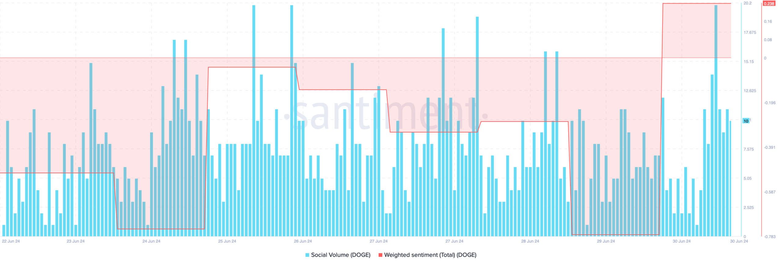 Die gewichtete Stimmung des Memecoins hat sich aufgrund der jüngsten Preissteigerungen ins Positive verschoben. Das bedeutet, dass die bullische Marktstimmung vorherrschend war.