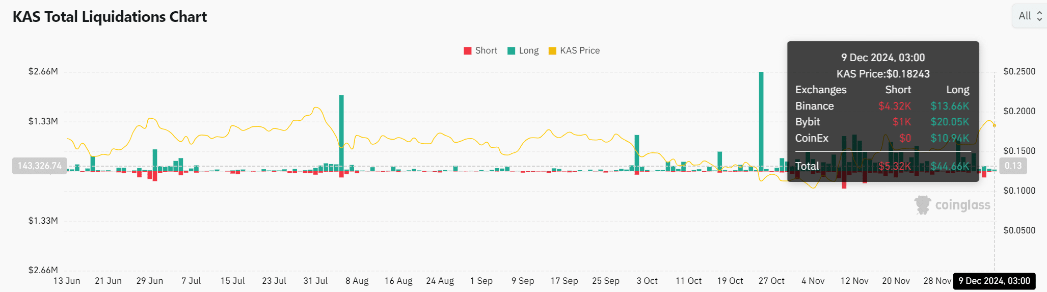 Die Liquidationsdaten deuten darauf hin, dass ein möglicher Preisanstieg wahrscheinlich ist, insbesondere wenn die KAS ihren Aufwärtstrend fortsetzt.