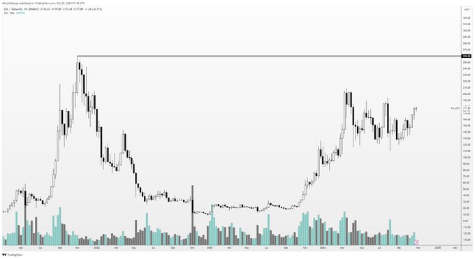 Solana ist als nächstes dran (SOL). Nach Laut dem Analysten, der ein Pseudonym verwendet, könnte Solana attraktive Einstiegsmöglichkeiten bieten, da es sich in einer Akkumulationszone befindet.