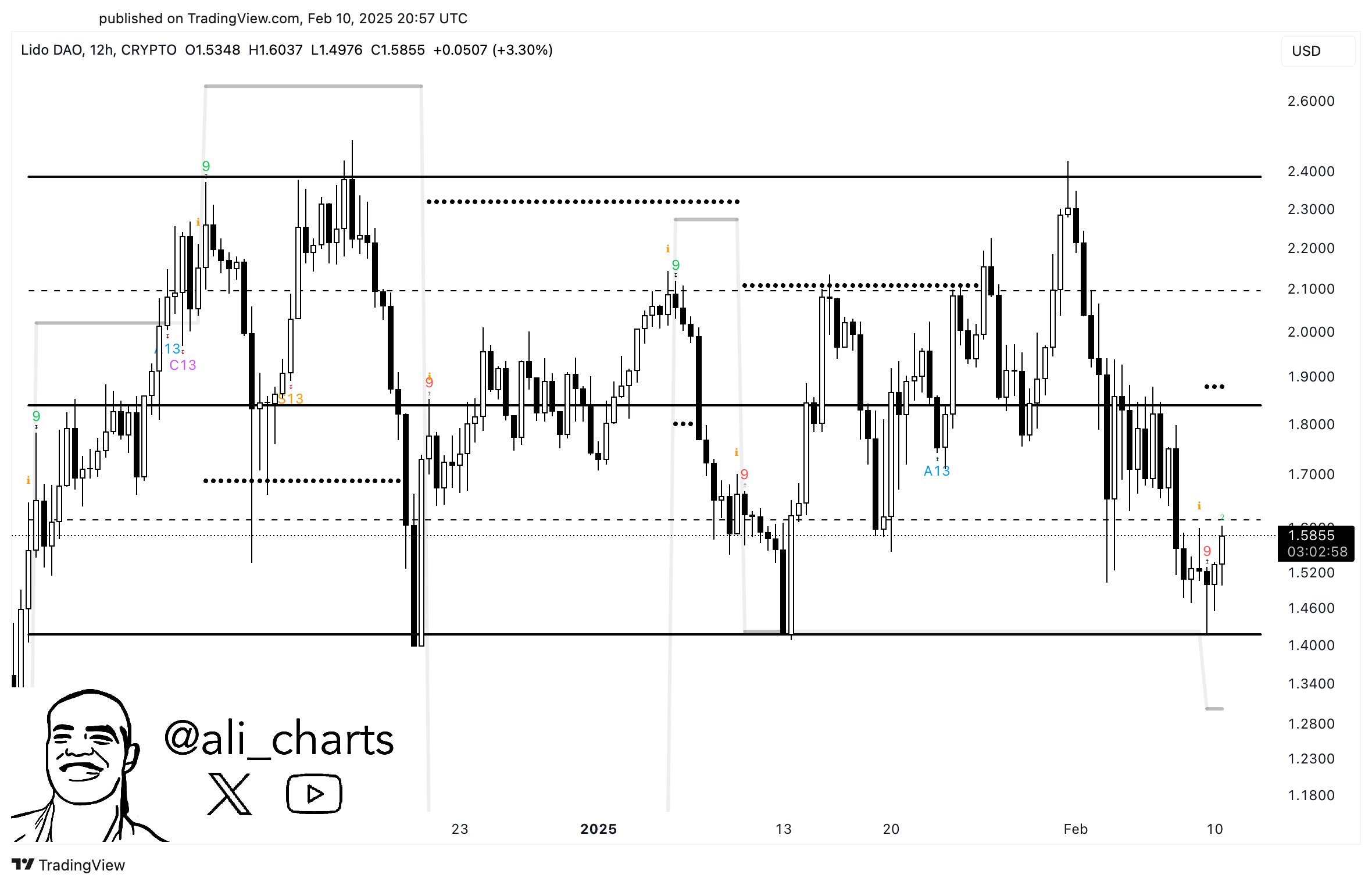 Als LDO 1,60 US-Dollar erreichte, lieferte der sequentielle TD-Indikator ein Kaufsignal in einem 12-Stunden-Diagramm. Dies deutete auf einen möglichen Aufwärtstrend hin.