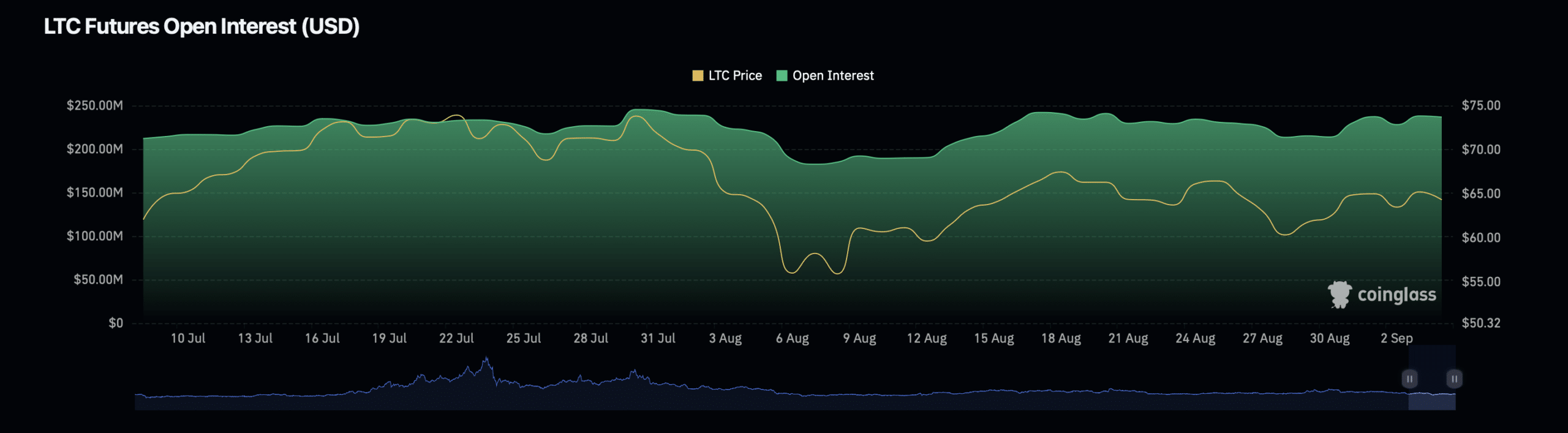 Nachfolgend finden Sie eine Liste von Daten Coinglass zeigt, dass das Open Interest von Litecoin steigt, mit einem Anstieg von 1 % auf eine Bewertung von 243,96 Millionen.