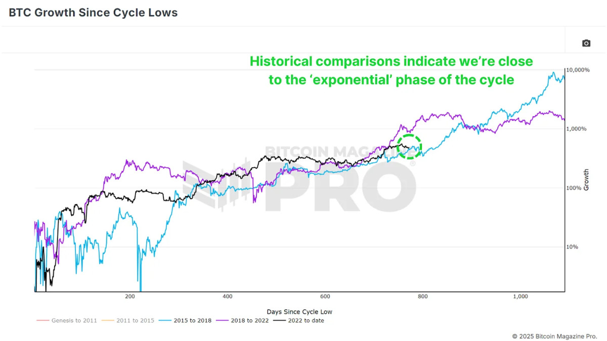 In der historischen Bitcoin-Preisbewegung sind häufig Zyklen sichtbar. „Abklingzeit nach der Halbierung“ dauert 6–12 Monate, bevor eine exponentielle Wachstumsphase eintritt. Basierend auf früheren ZyklenWir nähern uns diesem Durchbruch. Obwohl wir mit einem Rückgang der Renditen im Vergleich zu früheren Zyklen rechnen können, könnten erhebliche Gewinne erzielt werden.