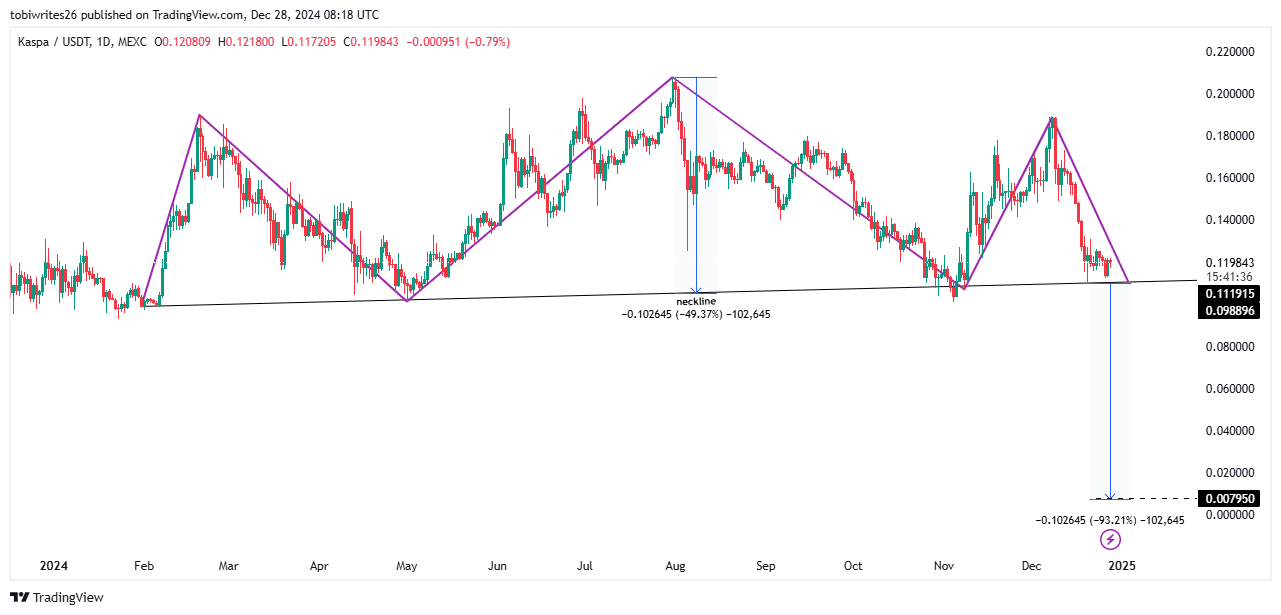 Diese Nackenlinie fungierte als entscheidendes Unterstützungsniveau und verhinderte einen schnelleren Rückgang. Wenn dieses Unterstützungsniveau durchbrochen wird, könnte die Chartposition von KAS abstürzen.