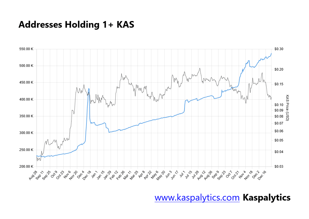 - KAS hat kürzlich einen neuen Rekord gebrochen: Mehr als 538.000 Adressen halten diesen Vermögenswert