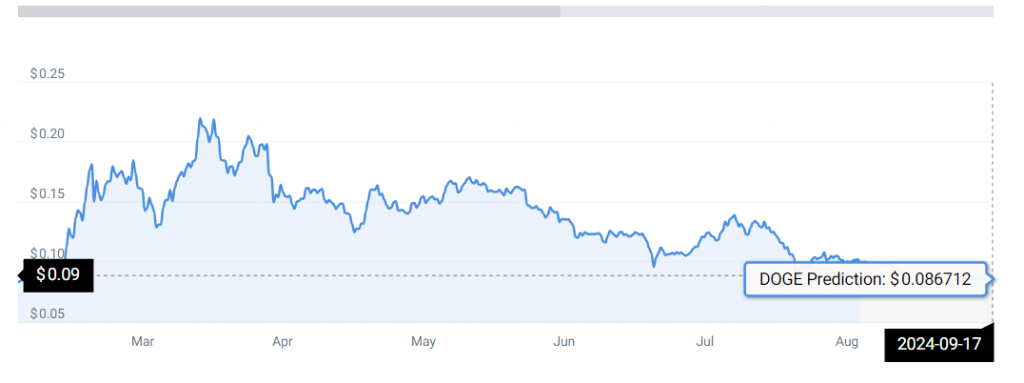 Gemäß CoinCodexDer Doge-Preis könnte am 31. August auf 0,89 USD fallen. Dies wäre ein Rückgang von 11 %. In gleicher Weise könnte der Doge-Preis bis zum 17. September weiter sinken. Er könnte bis auf 0,89 USD fallen.