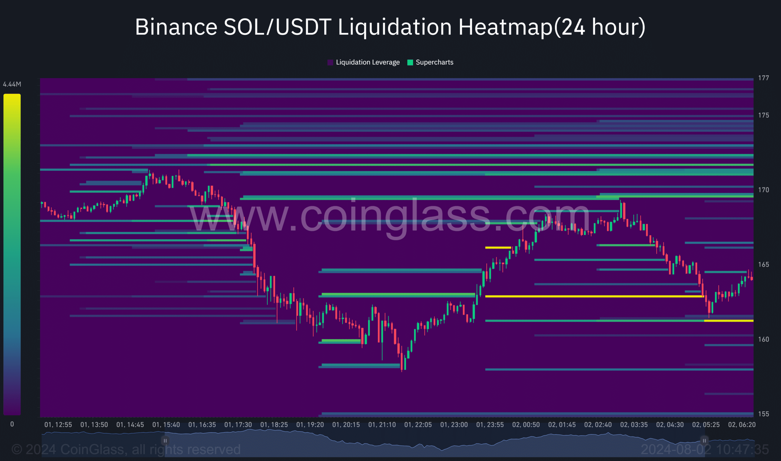 Laut Coinglass erfolgte dies unmittelbar im Anschluss an eine große Marktliquidation, bei der Positionen im Wert von 3,71 Millionen US-Dollar zu 161 US-Dollar abgeräumt wurden.