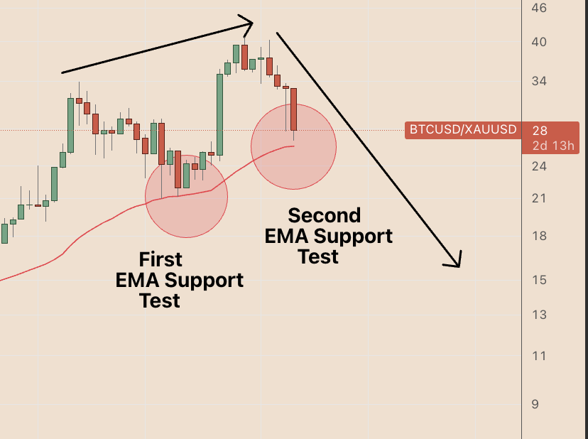 BTC/XAU hat erneut einen zweiphasigen EMA-Wiederholungstest abgeschlossen, der den Fractal 2021–2022 wiederholt.