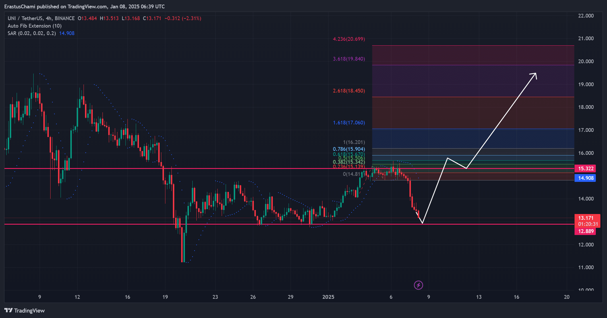 Das Potenzial der UNI-Erholung hängt vollständig vom Unterstützungsniveau von 13,20 $ ab.