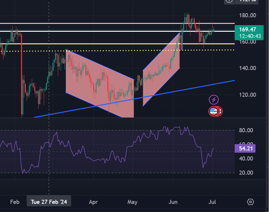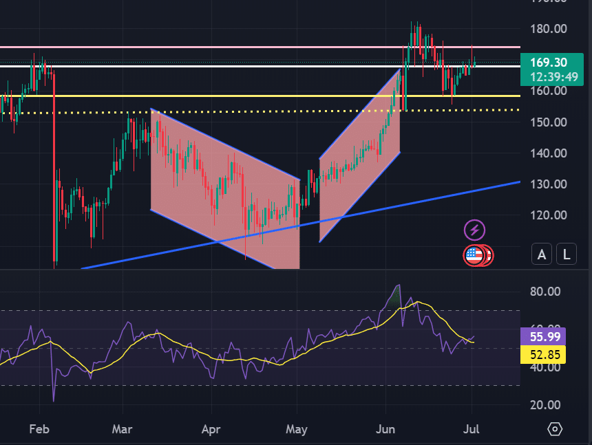 XMR wurde zum Redaktionsschluss bei 169,03 USD gehandelt, nachdem es den Widerstand bei 168 USD durchbrochen hatte. Dieser Ausbruch deutete auf eine Bewegung zum nächsten großen Widerstand bei etwa 174 USD hin.