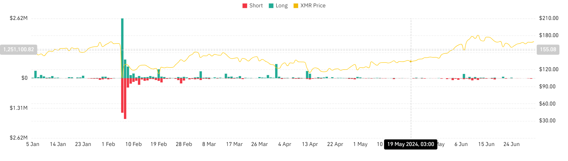 Laut Coinglass wurden die langfristigen und kurzfristigen Positionen von XMR nur sehr wenig oder gar nicht liquidiert.